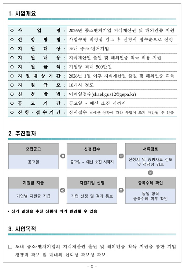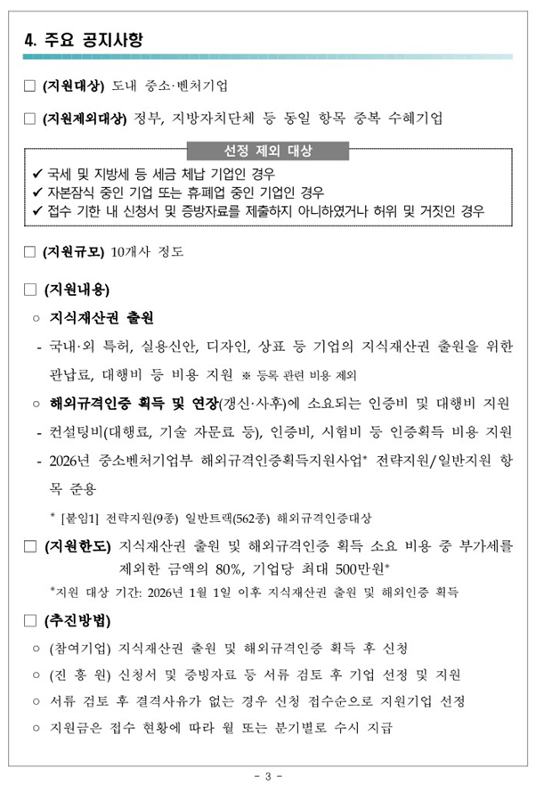 2026년 중소벤처기업 지식재산권 및 해외인증 지원사업 참가기업 모집 공고